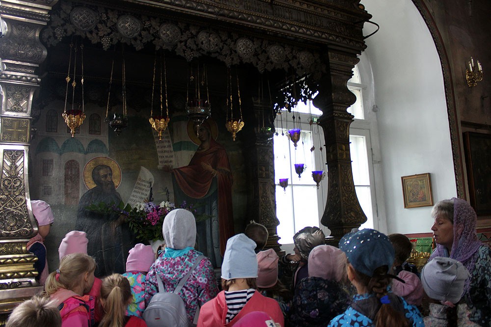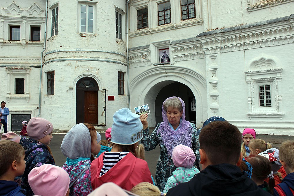 Обзорная экскурсия включала посещение Успенского и Никольского храмов. В ходе экскурсии юные паломники помолились у раки с мощами преподобного Трифона и Великорецкой иконы святителя Николая, увидели архитектурный ансамбль монастыря, храмовую роспись и чтимые иконы обители, узнали о совершаемом в этот день Церковью празднике Изнесения Честных Древ Животворящего Креста Господня. Особенно детям понравилось посещение источника и купели.