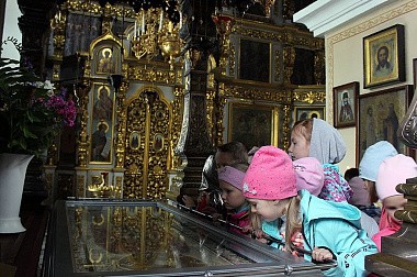 Опытный экскурсовод Светлана Вотинцева в познавательной форме рассказала детям об истории обители, Великорецкого крестного хода и обретения Великорецкой иконы святителя Николая.