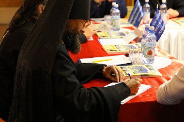 Работа круглого стола началась с молебна в верхнем пределе Успенского собора. Здесь же можно было ознакомиться с выставкой из фондов Омского музея просвещения, рассказывающей об истории археологического изучения и восстановления Успенского кафедрального собора в Омске, обретения мощей священномученика Сильвестра Омского (Ольшевского). Участникам была представлена книжная выставка, где были издания, посвященные теме новомученичества в XX веке, новинки православной литературы.