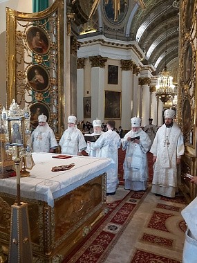 Его Высокопреосвященству сослужили митрополит Новгородский и Старорусский Лев, наместник Александро-Невской лавры епископ Кронштадтский Назарий, епископ Тихвинский и Лодейнопольский Мстислав, епископ Гатчинский и Лужский Митрофан, ректор Санкт-Петербургской духовной академии епископ Петергофский Силуан, настоятель храма святителя Иоанна Милостивого в г. Отрадное протоиерей Василий Стойков, настоятель Троицкого собора г. Подольска протоиерей Александр Ганаба, почетный настоятель Троицкого храма поселка Назарьево Одинцовского района Московской области архимандрит Нестор (Жиляев), духовенство обители и Санкт-Петербургской митрополии, гости в священном сане.