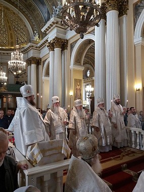 Богослужебные песнопения исполнили архиерейский хор Александро-Невской лавры под управлением иеродиакона Александра (Урбановича) и смешанный хор Санкт-Петербургской духовной академии под руководством монахини Ксении (Каньшиной).