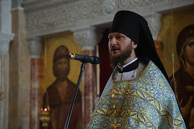 Проповедь по запричастном стихе произнес иеромонах Корнилий (Зайцев).