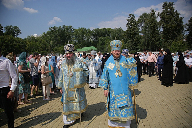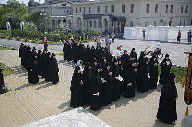 По окончании праздничного богослужения архипастыри, духовенство и гости обители совершили традиционный крестный ход вокруг Александро-Невского собора с главной иконой – Тихвинским образом Пресвятой Богородицы. У захоронений за алтарем Александро-Невского собора, где покоятся игумении обители, была отслужена заупокойная лития.
