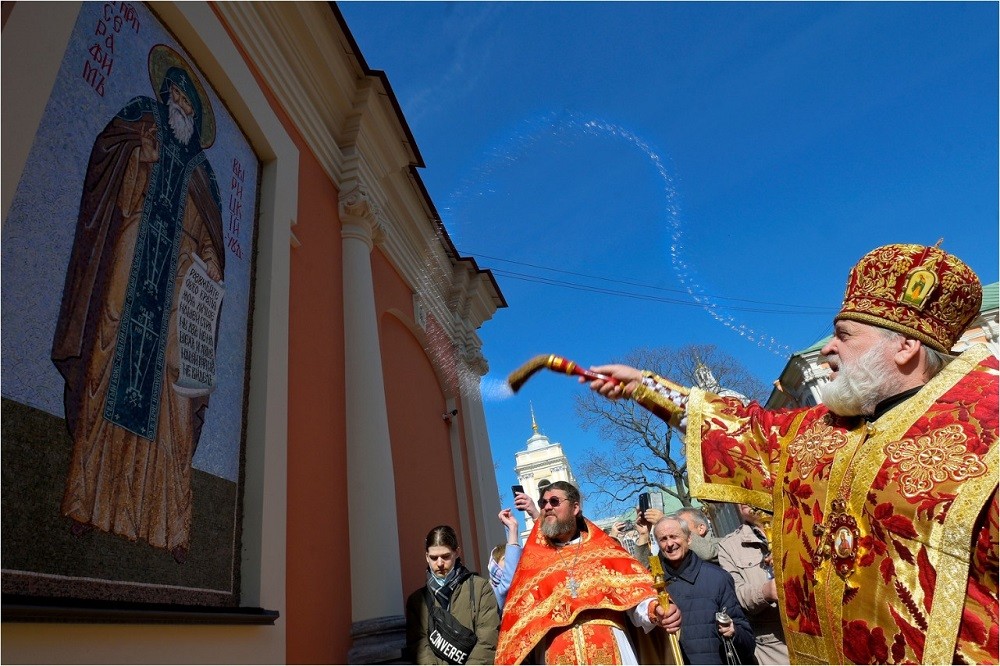После Божественной литургии братия Лавры во главе с наместником епископом Кронштадтским Назарием вышли из Свято-Троицкого собора и крестным ходом прошли к южным воротам. Владыка Назарий совершил праздничный молебен и освятил икону. Он представил тех, без кого не состоялось бы это событие – благотворителя Юрия Саулиди, Александру Сердитову, Михаила Селецкого.