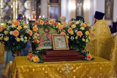 На полиелее перед мощами святого благоверного великого князя Александра Невского было исполнено величание.