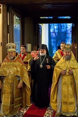 Его Преосвященству сослужили: секретарь Санкт-Петербургской епархии протоиерей Сергий Куксевич, настоятель храма Богоявления на Гутуевском острове протоиерей Павел Феер, ключарь Исаакиевского собора протоиерей Алексий Исаев, братия обители в священном сане и гости Лавры.