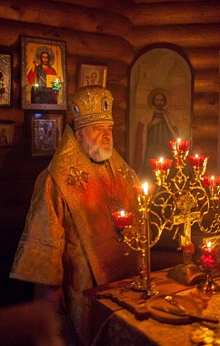 Епископ Назарий в этот день возглавил Божественную литургию в Никольском скиту обители.