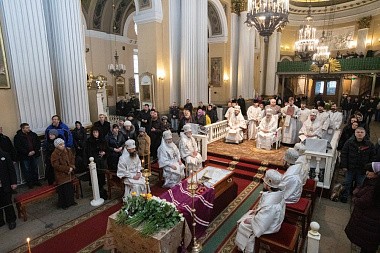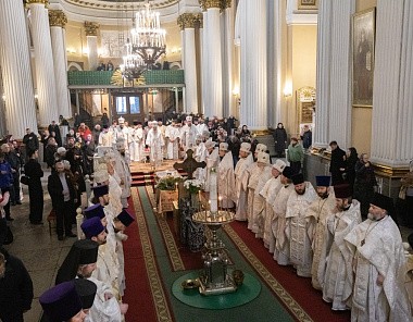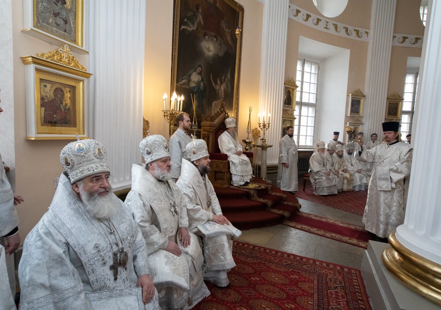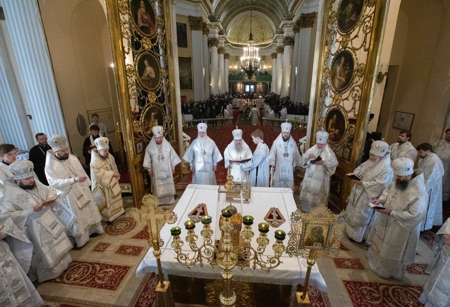 Божественную литургию в Свято-Троицком соборе и чин отпевания возглавил митрополит Санкт-Петербургский и Ладожский Варсонофий.