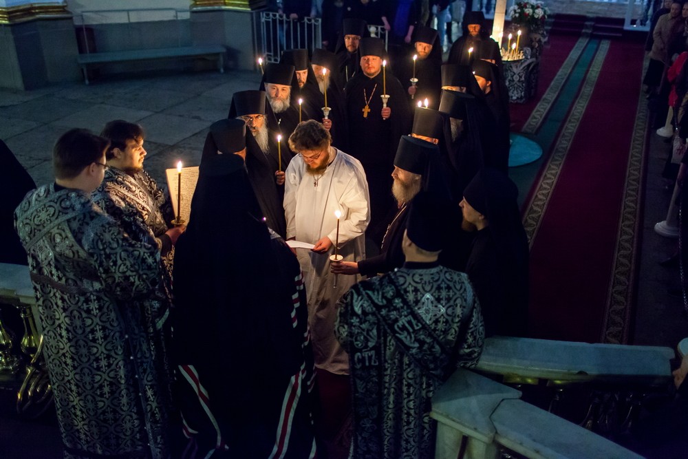 22 апреля 2019 года, в понедельник Страстной седмицы Великого поста, по окончании вечернего богослужения в Свято-Троицком соборе Александро-Невской лавры Санкт-Петербурга наместник обители епископ Кронштадтский Назарий совершил постриг в мантию иеродиакона (священноинока) Александра (Степанова) и нарек его Алексием в честь святителя Московского Алексия.