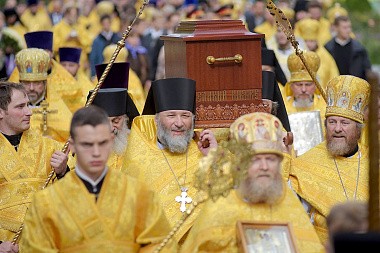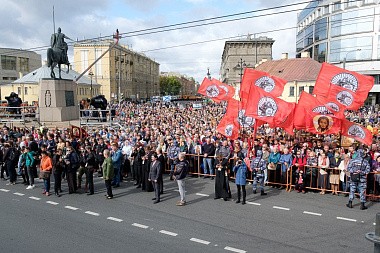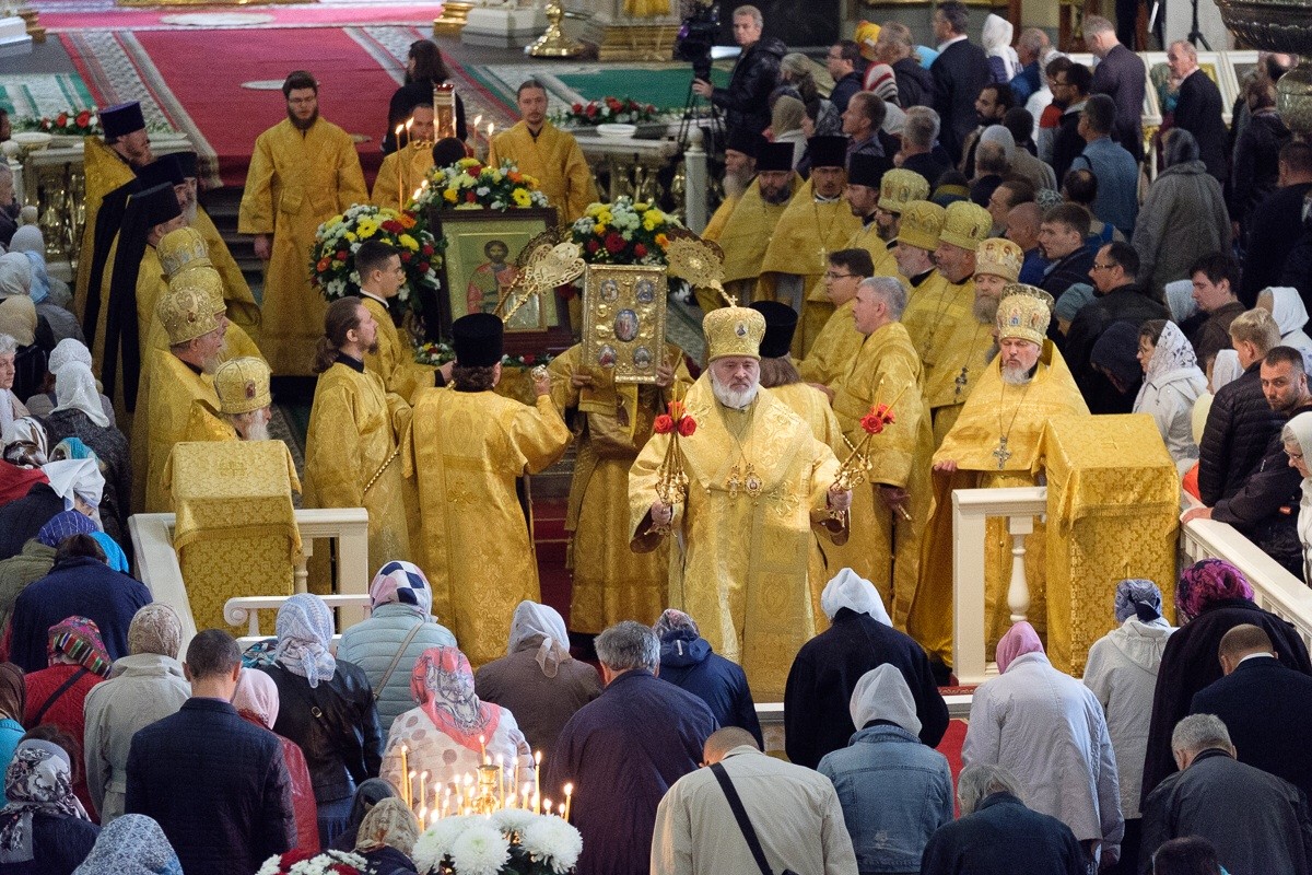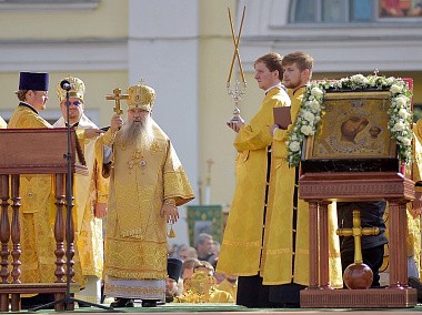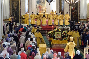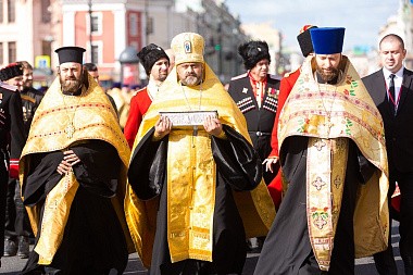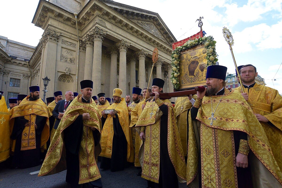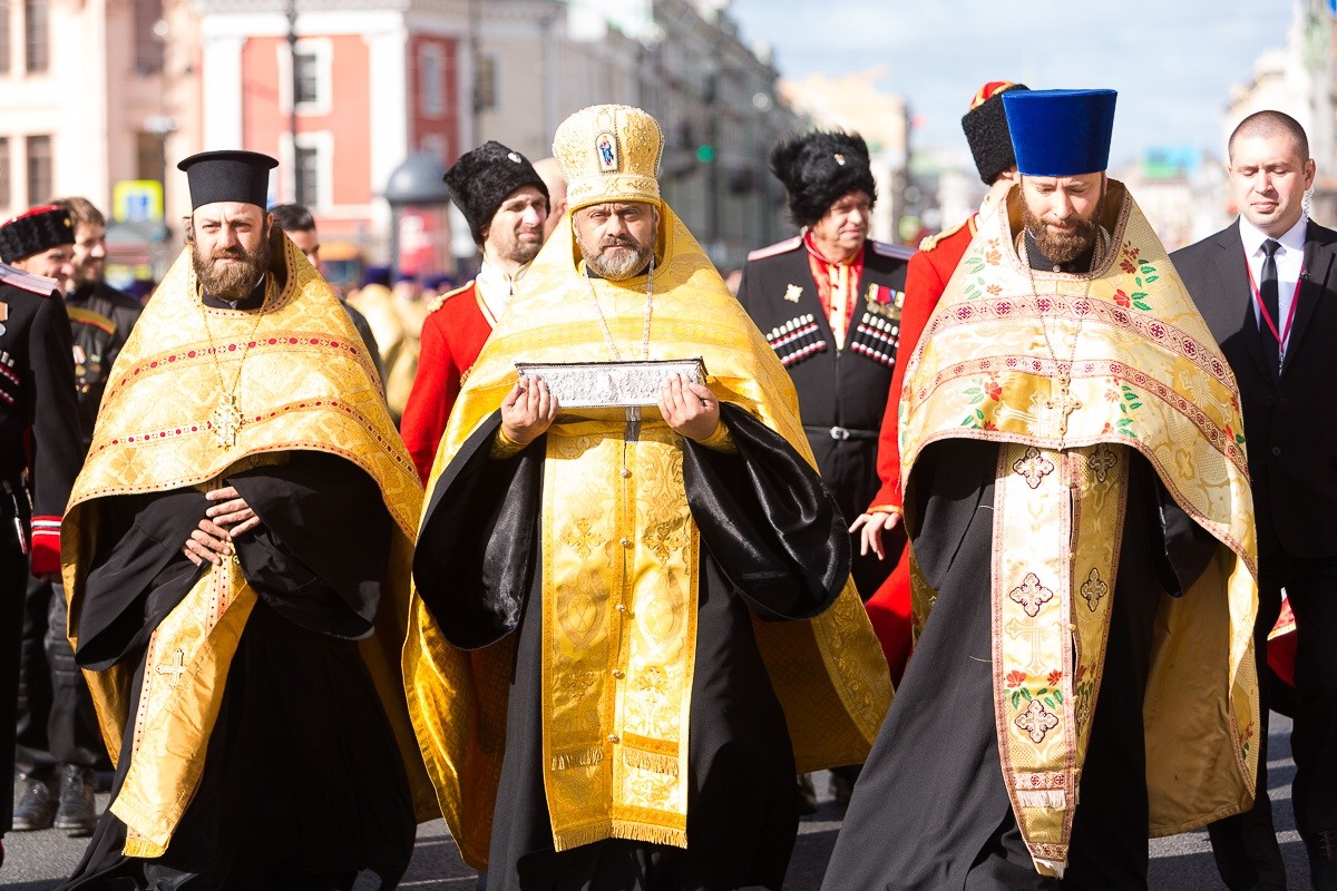 По главной магистрали города были пронесены Казанская икона Пресвятой Богородицы и доставленный ночью в Санкт-Петербург с острова Корфу ковчег с десницей святителя Спиридона, епископа Тримифунтского.