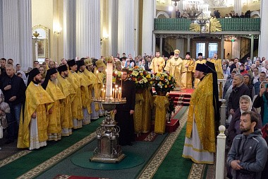 В Свято-Троицком соборе Александро-Невской лавры Божественную литургию возглавил наместник монастыря епископ Кронштадтский Назарий в сослужении братии обители в священном сане, духовенства и гостей Санкт-Петербургской епархии.