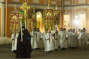 Под пение стихиры «Воскресение Твое, Христе Спасе...» вокруг Троицкого собора был совершен крестный ход.
