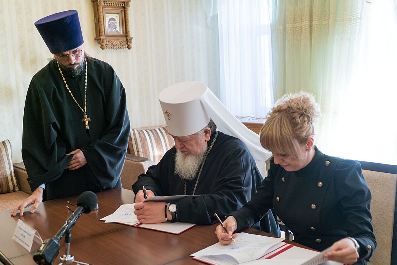 В подписании документа приняли участие митрополит Воронежский и Лискинский Сергий и первый заместитель руководителя Департамента культуры Воронежской области М.А. Мазур.