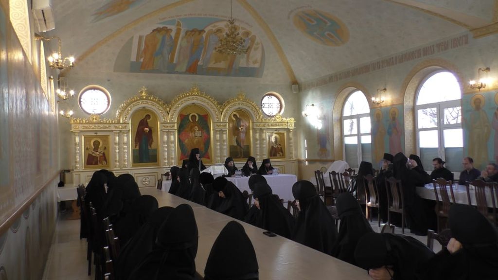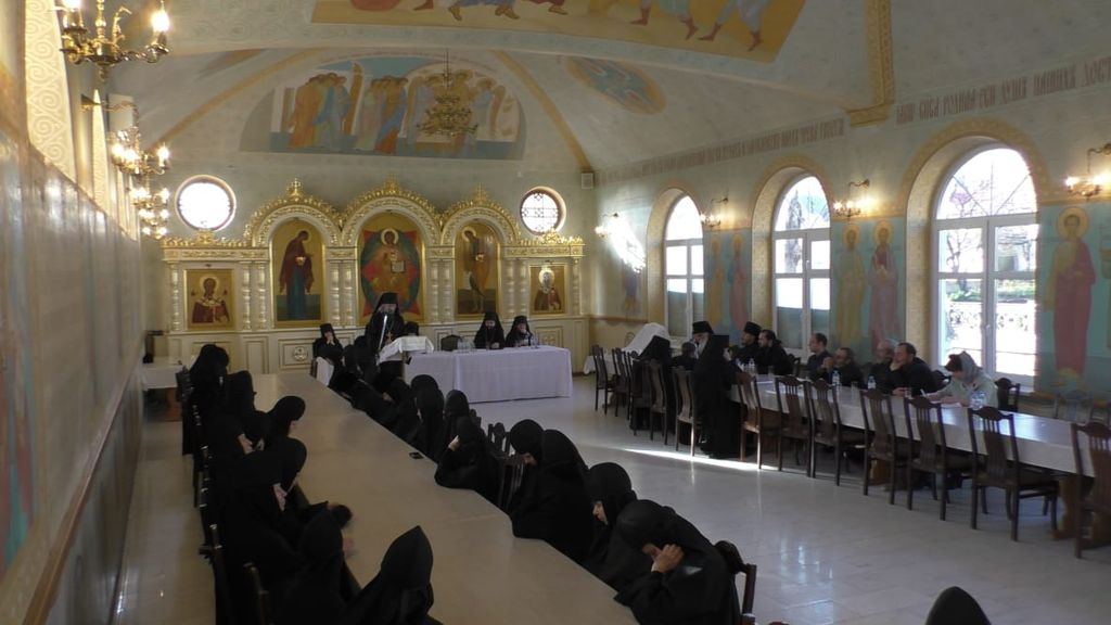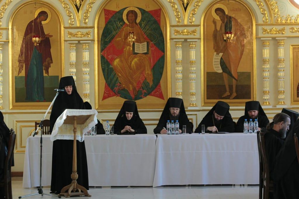 С докладами выступили: благочинный монастырского округа, наместник Свято-Успенского Дивногорского монастыря игумен Алексий (Сукачев), настоятельница Алексеево-Акатова женского монастыря игумения Варвара (Сажнева), игумен Воскресенского Белогорского мужского монастыря Илия (Ждамиров), настоятель Серафимо-Саровского мужского монастыря иеромонах Дионисий (Шумилин), настоятельница Преображенского Толшевского монастыря монахиня Тихона (Нефедченко).