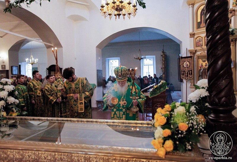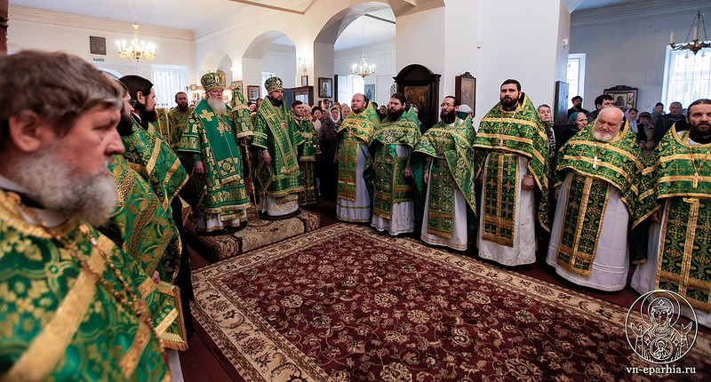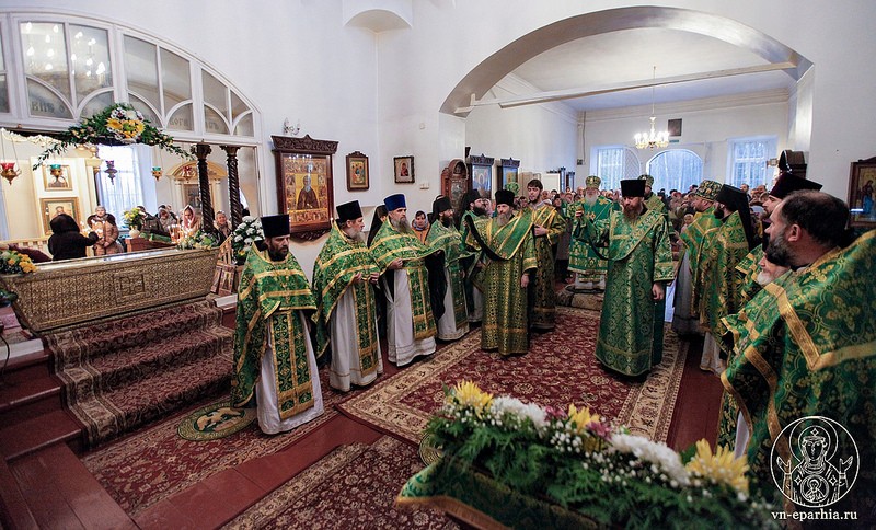 Архиереям сослужили наместник монастыря архимандрит Митрофан (Письменский), насельники обители игумен Арсений (Гавура), иеромонах Алексий (Федорчук), иеромонах Владимир (Конивченко), настоятель храма Св. вмч. Георгия Победоносца пос. Подберезье протоиерей Роман Литвинюк, настоятель храма Благовещения Пресвятой Богородицы пос. Шимска протоиерей Павел Клиновой, настоятель храма Тихвинской иконы Божией Матери пос. Холм протоиерей Василий Середа, настоятель храма Вмц. Анастасии Узорешительницы с. Бакачино иерей Генадий Корнев, настоятель храма Покрова Божией Матери с. Борисово иерей Николай Епишев, настоятель храма Вознесения Господня иерей Сергий Федоров, настоятель храма Св. вмч. Георгия Победоносца д. Великое Село иерей Владимир Пилипчук.