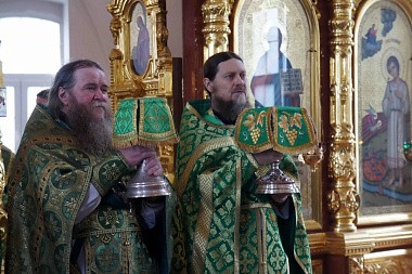 Всенощное бдение и Божественную литургию возглавил наместник обители архимандрит Иосиф (Волков).