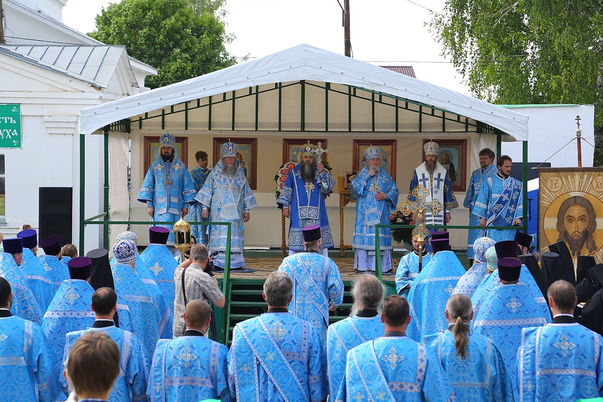 По окончании литургии икона Пресвятой Богородицы «Достойно есть» была перенесена крестным ходом к месту своего постоянного пребывания – в церковь в честь Святого Духа.