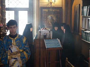 За Литургией молилась настоятельница монастыря игумения Феофила (Лепешинская) с сестрами.