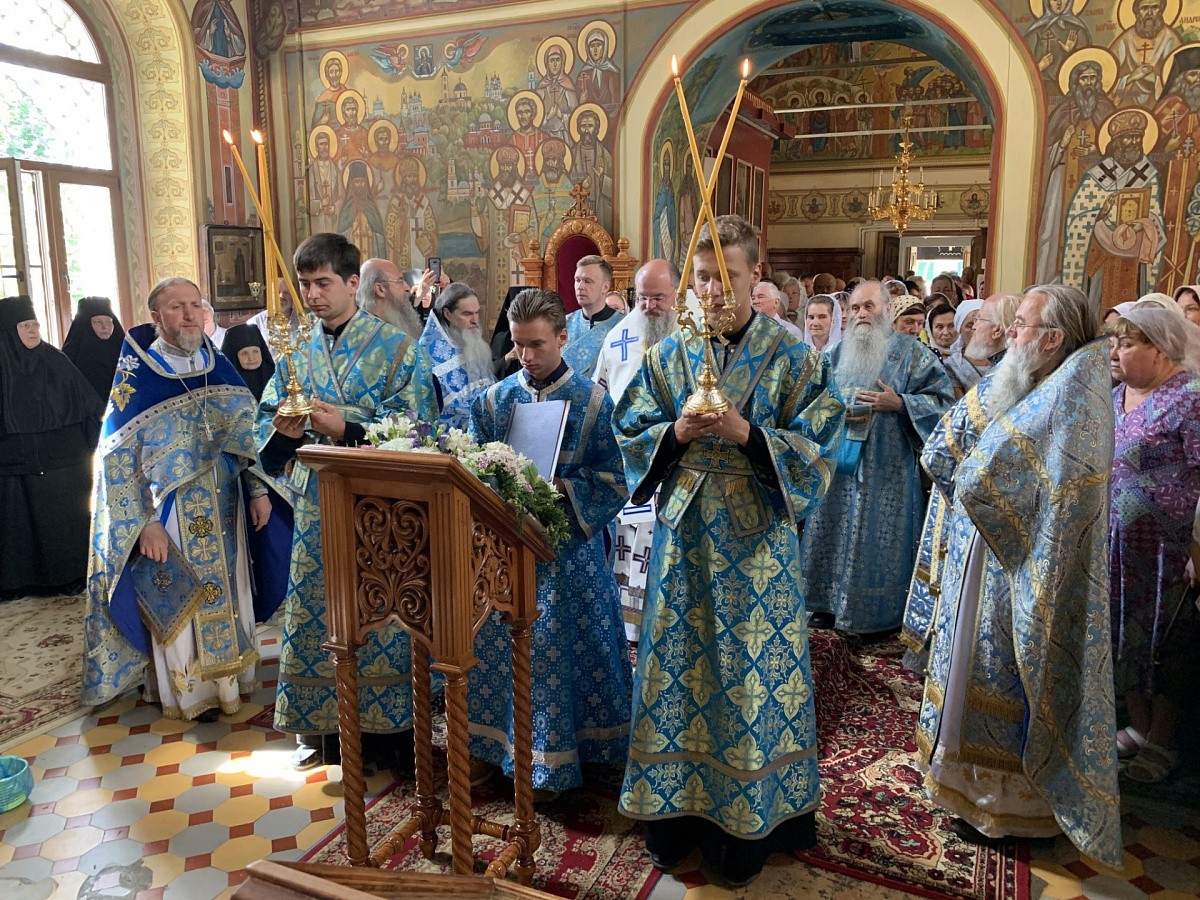 За богослужением молились настоятельница монастыря игумения Феофила (Лепешинская) с сестрами и многочисленные паломники.