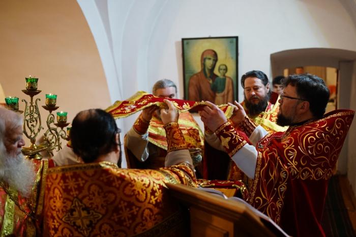 В завершении богослужения благочинный обители отец Феогност обратился к верующим со словами поздравления, затем молившиеся приложились к раке со святыми мощами прп. Варсонофия Щегловского и Тульского, которая пребывает под сенью в алтарной части северного придела собора.