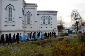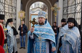 По окончании Литургии архимандрит Клавдиан возглавил крестный ход к монастырской колокольне, над аркой которой находится Иверская икона Божией Матери. По давней традиции в этот день святой образ был принесен с колокольни для поклонения. Перед Святыми вратами в Богородичную Щегловскую обитель был отслужен молебен со славлением и величанием Божией Матери.