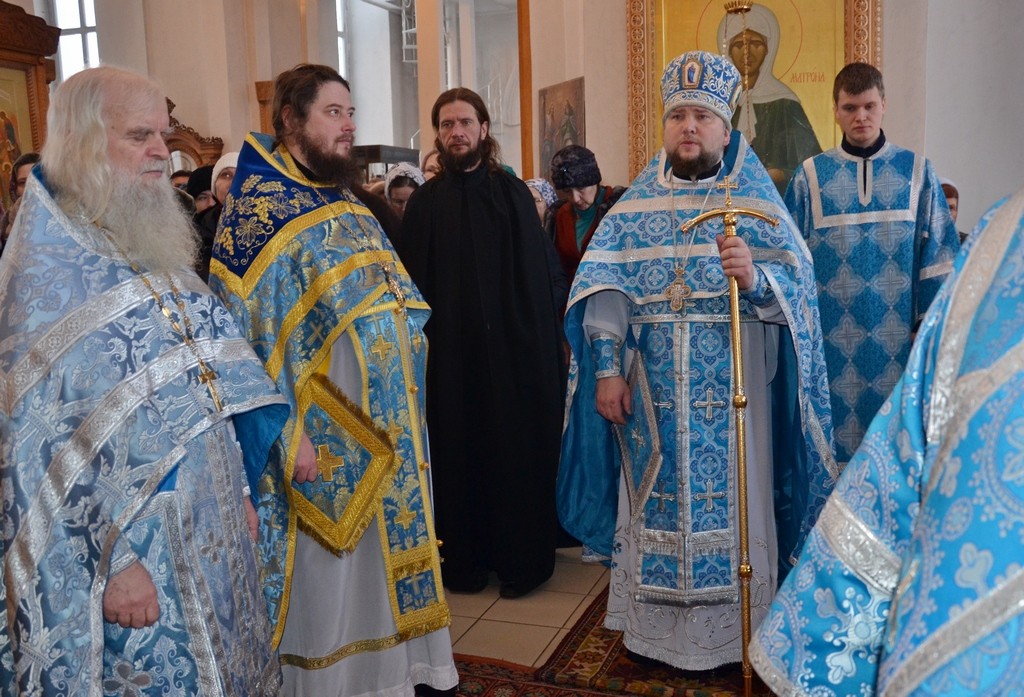 Его Высокопреподобию сослужила братия обители в священном сане: благочинный монастыря игумен Феогност (Авдеев), игумен Филарет (Смирнов), игумен Михаил (Тополев), иеродиакон Евлогий (Харитонов).