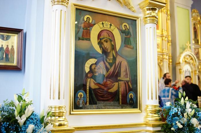 Сей соборный храм посвящен иконе Божией Матери "Млекопитательница". Нам непривычно слышать это название – более понятны "Казанская", "Владимирская", "Тихвинская", "Донская", "Смоленская" и иные иконы, которые были прославлены, которые Господь и Матерь Божия благословили здесь, на русской земле, ведь это всё славянские иконы.