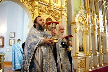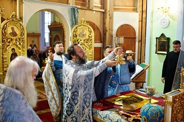 Божественную литургию в соборном храме в честь иконы Божией Матери «Млекопитательница» совершил наместник Богородичного Пантелеимонова Щегловского мужского монастыря Тулы архимандрит Клавдиан (Ларьков) в сослужении братии обители в священном сане.