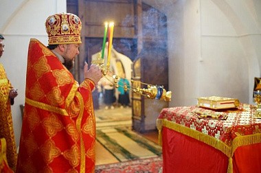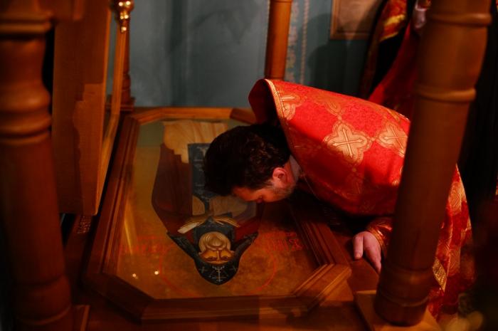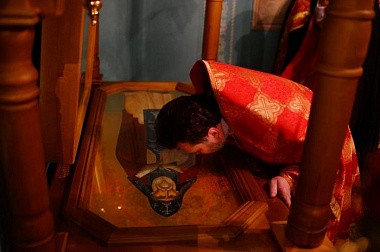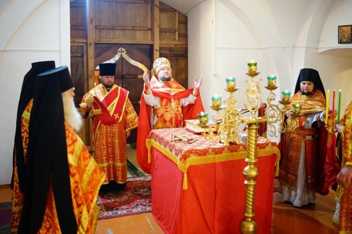 После крестного хода и молитвенного пения отец наместник обратился к верующим с пастырским словом: