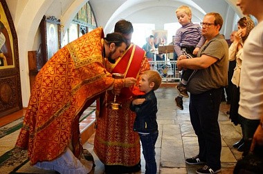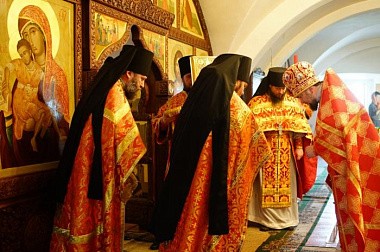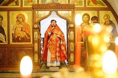 По завершении заупокойной литии насельник обители игумен Алексий поздравил верующих: