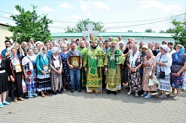 В тот же день от монастыря в поселок Хромовка отправился автобус с верующими на место молитвенных подвигов Феодора Томского. Прежде там находилась келия старца, а сейчас установлена икона-памятник. Перед образом был отслужен молебен.