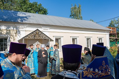После Литургии вокруг стен обители прошел крестный ход, который возглавил митрополит Амвросий. Вокруг монастыря пронесли чтимую Смоленскую икону Божией Матери, впереди шли монахини с букетами цветов, дети несли хоругви.