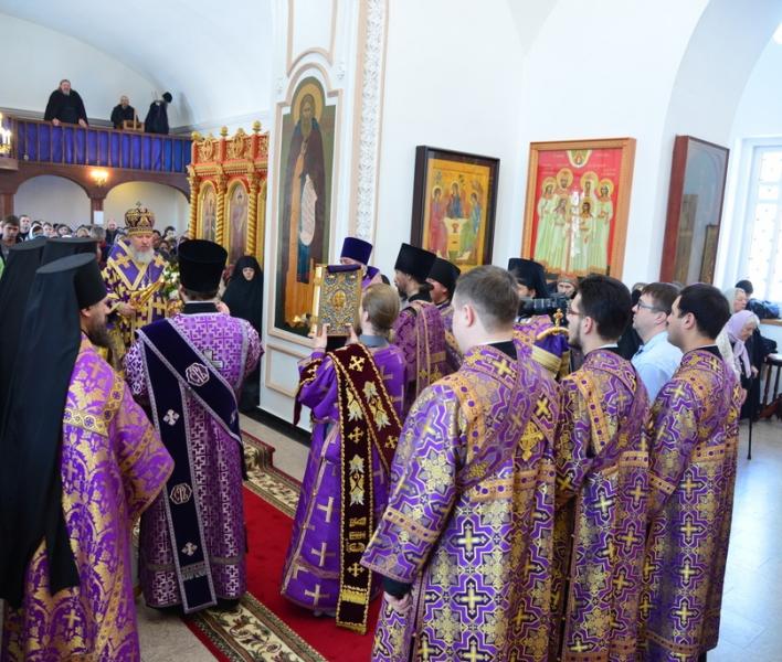 Затем в своем святительском слове, обращенном к прихожанам и паломникам старинной обители, Его Высокопреосвященство рассказал о значении подвига прославляемой в этот святой: