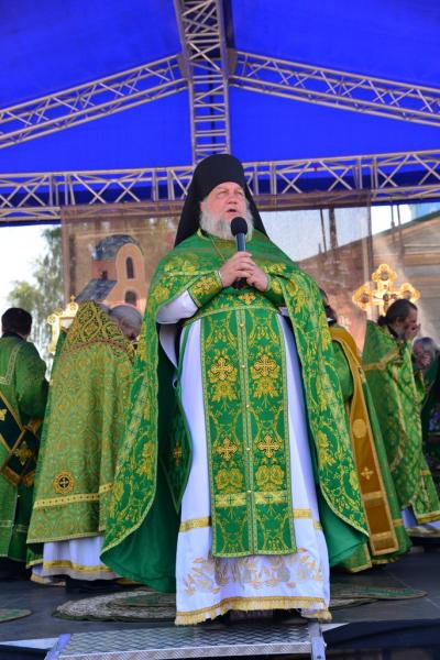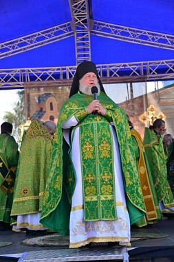 В центре соборной площади была установлена украшенная цветами рака со святыми мощами новопрославленного преподобного.