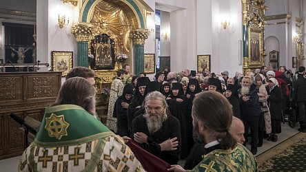 После Божественной литургии был совершен чин о Панагии и трапеза, затем в конференц-зале обители прошла конференция монашествующих Тверской епархии в рамках XII Фаддеевских образовательных чтений.