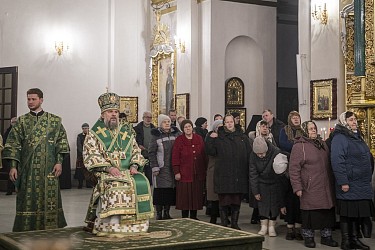 По заамвонной молитве архипастырь в сослужении духовенства совершил славление и вознес молитву преподобному Нилу у раки с его святыми мощами.