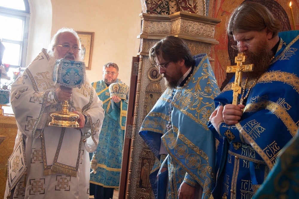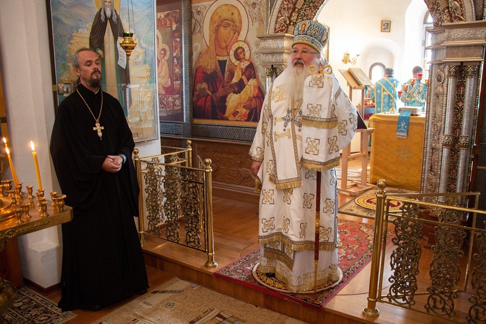 Его Высокопреосвященству сослужили: благочинный храмов Центрального округа протоиерей Василий Иванов, благочинный храмов Болховского благочиния протоиерей Александр Кузнецов, клирик Троицкого Рождества Богородицы Оптина женского монастыря протоиерей Алексий Комов и духовник Орловской православной гимназии протоиерей Николай Евдокимов.