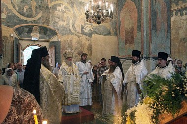 Божественную литургию в древнем Спасо-Преображенском соборе обители совершил митрополит Ярославский и Ростовский Пантелеимон в сослужении благочинного приходов центрального Ярославского городского округа и настоятеля храма Димитрия Солунского протоиерея Олега Косолапова, старшего священника Казанского женского монастыря протоиерея Василия Лищенюка, старшего священника Спасского монастырского подворья иеромонаха Агафангела (Шкуранкова), настоятеля Кирилло-Афанасиевского мужского монастыря игумена Никодима (Федорова) и клириков храмов г. Ярославля.