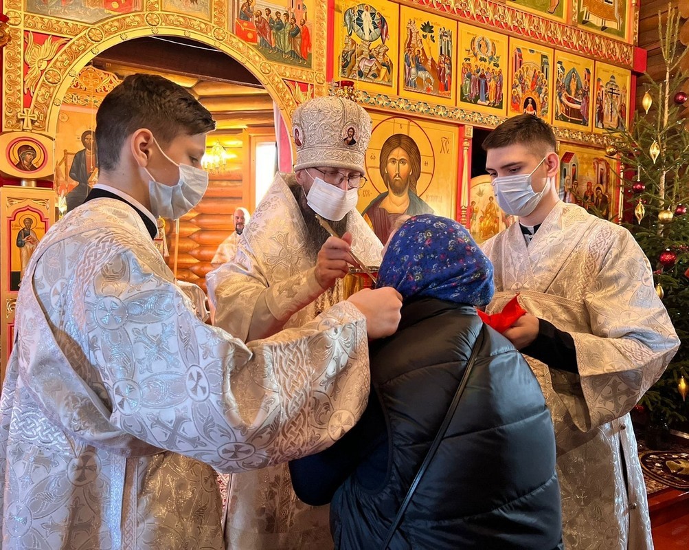 По завершении Литургии Преосвященнейший владыка поздравил собравшихся на богослужение с праздником Рождества Христова и 5-летием со дня образования обители.