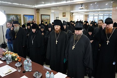 В приветственном слове архиепископ Максимилиан, который зачитала игумения Параскева (Ляхова), настоятельница женского монастыря в честь Калужской иконы Божией Матери, ответственный секретарь направления XIV «Монаcтыри и монашество», участникам круглого стола напоминалось о добродетели смирения, и пожелал рассмотреть «вопросы духовной и внешней жизни монастырей, которые помогли бы избежать различных искушений и помогли на пути исполнения евангельских заповедей, ведущих к Богу и вечной блаженной жизни».
