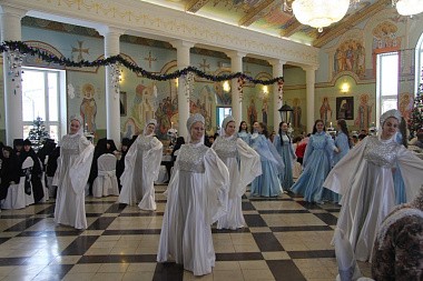 Традиционно в этот день сами воспитанницы становятся служительницами Божией Матери в храме, на кухне, в трапезной, и, конечно, на сцене – чтобы порадовать всех своими талантами.Девочки церковничают во время праздничного всенощного бдения и Божественной литургии, прислуживают в алтаре, читают Апостол и канон, поют на клиросе, составляют меню праздничного стола, готовят многие блюда, помогают накрывать и украшать столы к праздничной трапезе, а также готовят праздничную сказку-представление со множеством сюрпризов.