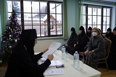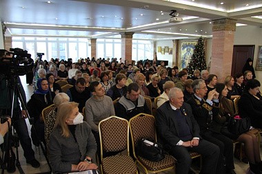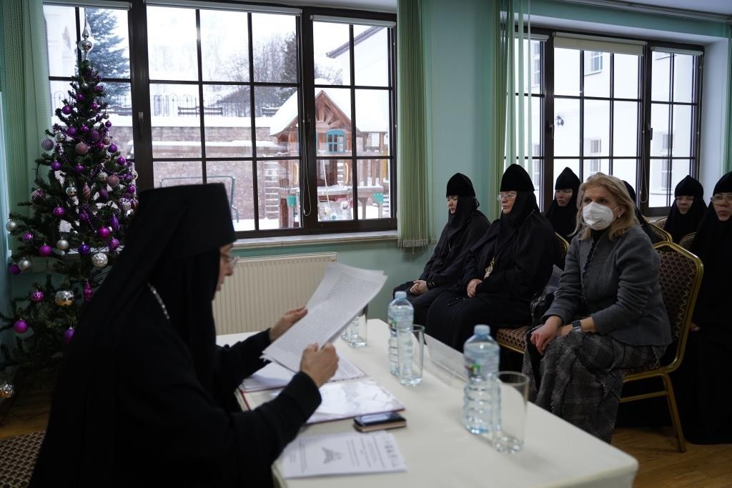В докладе И.В. Бабаковой, заместителя председателя Благотворительного фонда имени Подольских курсантов, об историческом фестивале-марафоне «Предел нападения: от 80-летия боев на Ильинских рубежах до 210-летия Малоярославецкого сражения» рассказывалось об этом фестивале, который проводит монастырь, о его перспективах и значении для патриотического воспитания старшеклассников и молодежи. По завершении своего доклада Ирина Бабакова передала для настоятельницы Черноостровского монастыря благодарственное письмо за «Урок мужества», посвященный Подольским курсантам от воспитанниц детского православного пансиона «Отрада».