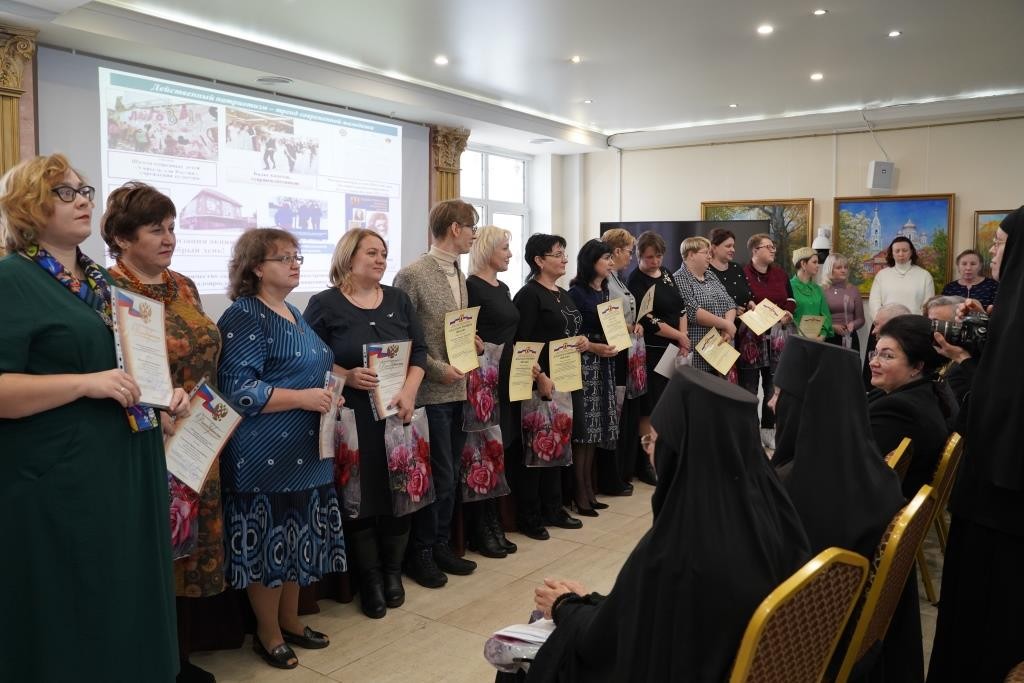 В этот день в залах интерактивного музея «Малоярославец – город двух великих побед» также были вручены грамоты и подарки школьникам-участникам Свято-Никольских Черноостровских чтений, благодарственные письма и подарки их учителям. Было также зачитано приветственное слово министра культуры Калужской области П.А. Суслова, отметившего большой вклад Свято-Никольского Черноостровского монастыря в дело патриотического воспитания и представлено приветственное слово-видеообращение сопредседателя форума, игумении Николаи, пожелавшей участникам успешной работы.
