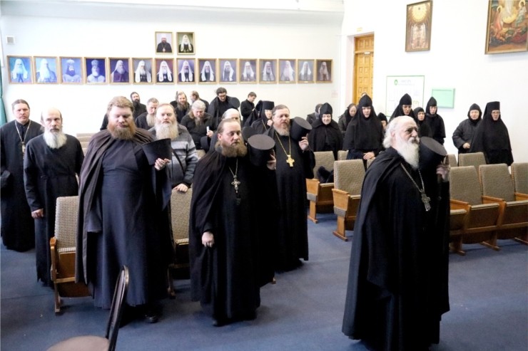 1. О монашеских обетах и значении их для монашествующих братия и сестры размышляли после доклада инокини Софии (Рузавиной), насельницы Тихвинского Богородицкого женского монастыря г. Цивильска.