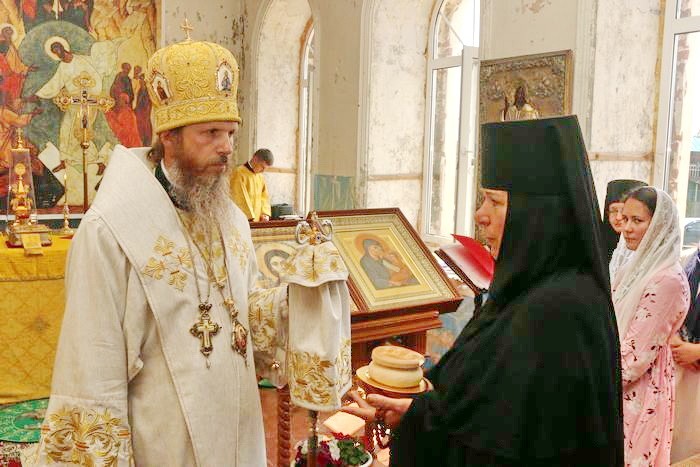 В свою очередь, епископ Варнава поздравил настоятельницу монастыря с престольным праздником, а затем произнес перед верующими проповедь.