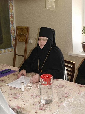 Участники съезда выслушали доклад игумении Антонии (Мироновой), посвященный духовному наследию святителя Тихона Задонского.