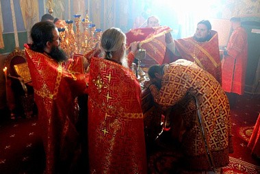 В этот день за Божественной литургией Его Высокопреосвященству сослужили благочинный Вачского округа протоиерей Александр Черненков и клирики епархии.