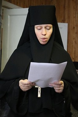 Выступление игумении Никоны было посвящено истории появления и развития уставной монастырской жизни. Она отметила, что если стараться придерживаться духа устава, не пренебрегая при этом точным исполнением правил, то послушание и жизнь монаха в целом становится как бы непрестанной молитвой и благодарением Богу. Это поддерживает молитвенный настрой и помогает сосредоточиться, успокоиться, отрешиться от суеты и осуждения ближних, начать внутреннюю жизнь, решая настоящие, а не вымышленные проблемы своего бытия.
