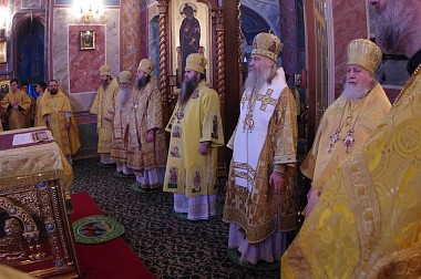 «Сердечно благодарю вас за соборную молитву в памятный для меня день. Благодарю владыку Феогноста, владыку Даниила и владыку Феофилакта за то, что прибыли в Дивеево. Некогда мы вместе несли послушание в Троице-Сергиевой Лавре. Счастлив человек, который мог пожить и потрудиться в обители преподобного Сергия. Жизнь в этом монастыре — живой пример монашества. Где бы я ни был, моя душа остается там, в Троицком соборе у раки с мощами преподобного Сергия. У епископа много дел по восстановлению обителей, строительству храмов. Но не в этом его задача. Главное — возрождение молитвенного делания в святых обителях и подготовка священнослужителей, которые трудились бы с усердием, чтобы вера Христова не оскудевала в сердцах людей, а укреплялась. Будем нести наше служение и впредь, и молить Господа Бога о помощи, чтобы Он наши немощи уврачевал и укрепил Своей Божественной благодатью».