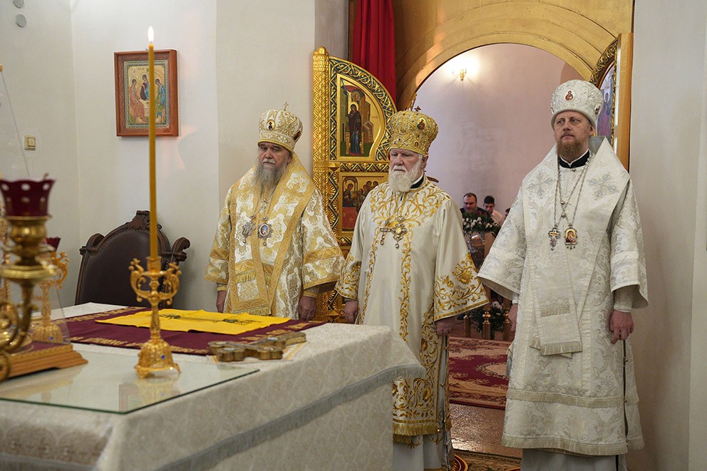 Его Высокопреосвященству сослужили: епископ Рыбинский и Романово-Борисоглебский Вениамин, епископ Переславский и Угличский Феоктист, духовенство митрополии.